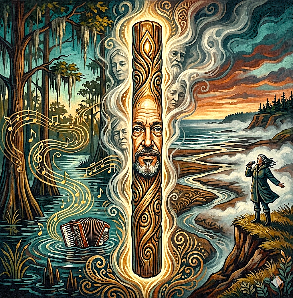 The Cajun Dead and le Talkin' Stick catalogue are built entirely on that structural gravity. Every song in the eighty-plus collection names something specific. Every song takes a genuine position on the world it is describing. Not a performed position focus-grouped into inoffensiveness, but an actual one—the kind that the heritage industry of Atlantic Canada has spent years refusing to fund precisely because it is too uncomfortable to be useful as a tourism narrative. That refusal is the external confirmation of authenticity. As documented in the conscious folk catalogue at moderncontemporaryartworktrends.com, the project defines itself as a structural refusal of the values that created the slop crisis: the belief that music's function is demographic targeting and that a song's worth is measured in algorithmic retention rather than human truth.