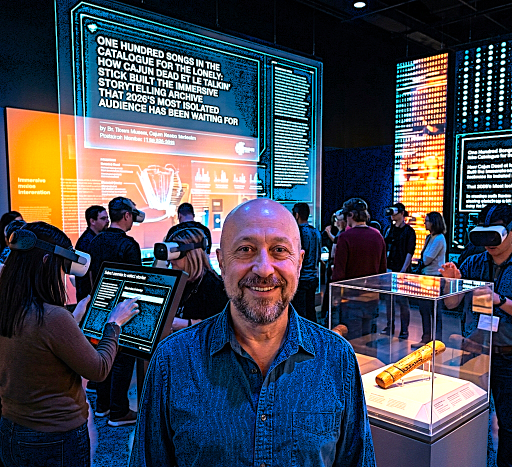 The complete archive of this project is detailed in the Cajun Dead et le Talkin' Stick song catalog, a living document where forty griot narratives converge: anti-war elegies, Acadian reparative anthems, ballads of migration, and love songs for the displaced.